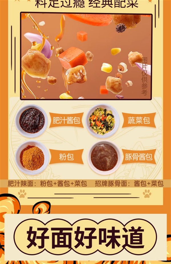 拍8件,豚骨方便面+肥汁辣面,今日下单8件,汤汁浓郁,折合单杯2.24元。口乐招牌豚骨面单杯*73G售价4.99元,正品保障,到手8杯,口感丰富。